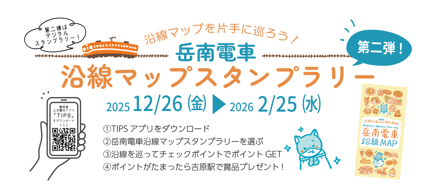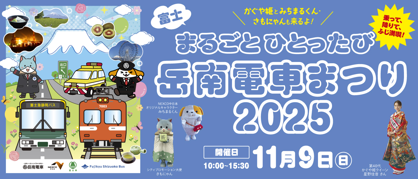 静岡県富士市内のJR東海道線 吉原駅と岳南江尾駅とをコトコト結ぶ全長9.2Kmの“のどかな電車”です。 全ての駅から富士山が見えたり、工場夜景電車があったり、「つけナポリタン」の名店があったり、あたたかい魅力がたくさん詰まっています。
