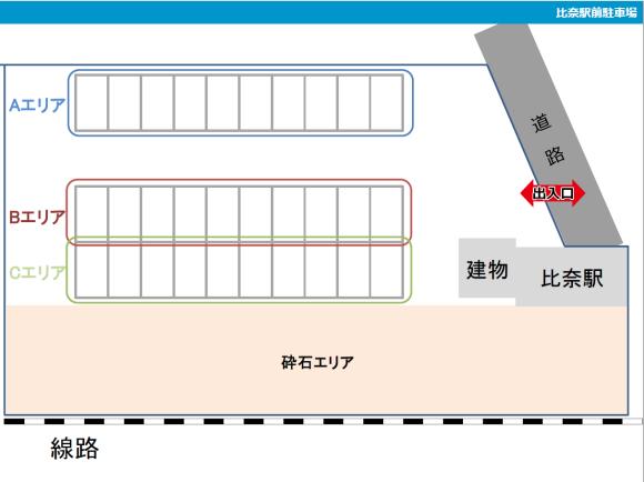 比奈駅前駐車場(西側一部アスファルト舗装箇所)