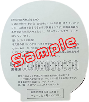 毘沙門天大祭だるま市の「鈴川だるま」を広くPRするため、だるま型の一日フリー乗車券を発売します。