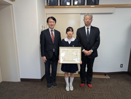 東京都台東区立根岸小学校 当時小学5年生の浅羽 茉莉(あさば まつり)さんに、3月11日(水)に感謝状を贈呈しました。